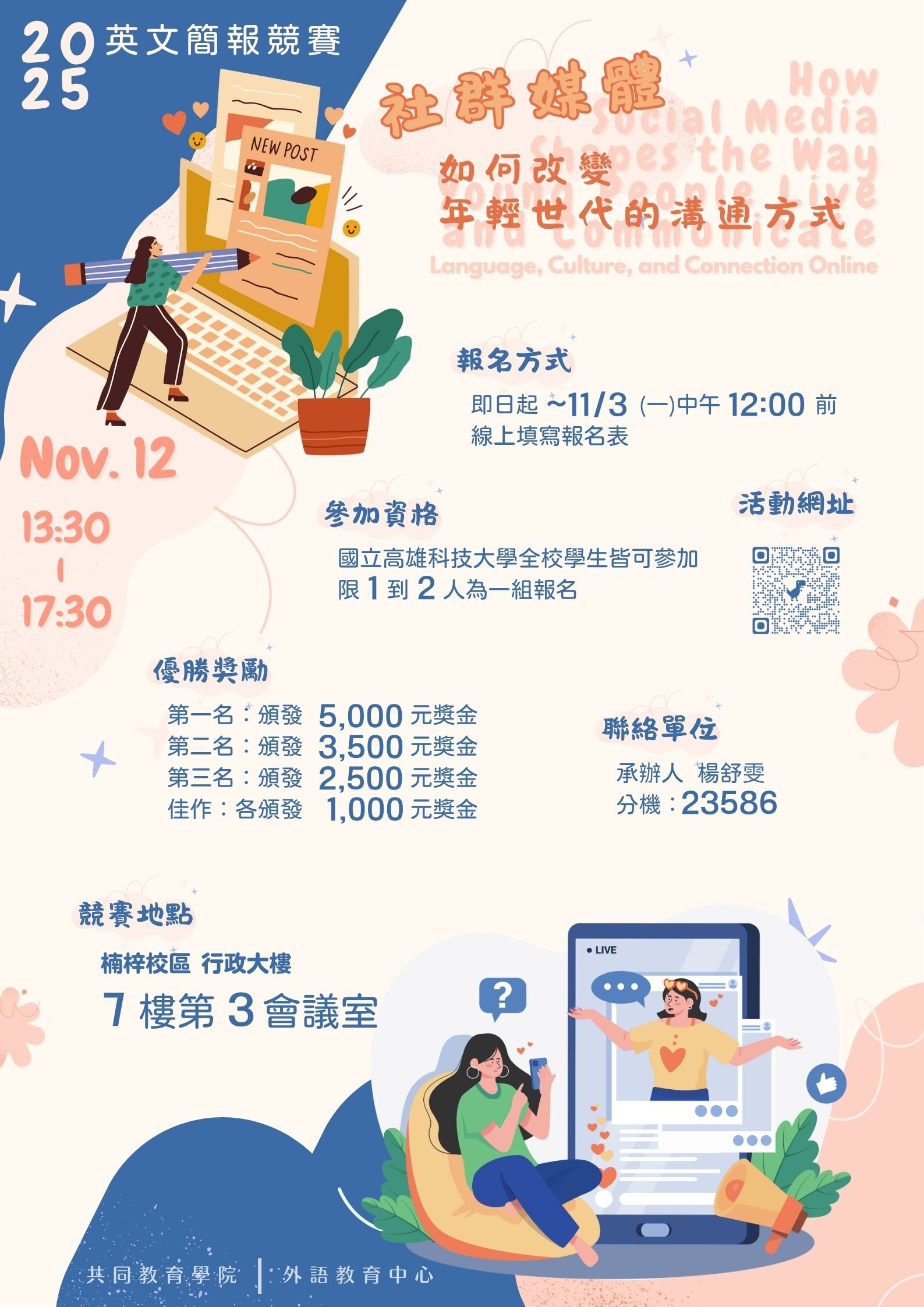 競賽詳細規則、評分標準及其他注意事項,請參閱附件【英文簡報競賽 - 2025 簡章】。